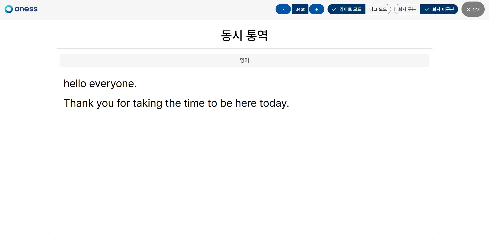 아네스노트는 개인별 발화 속도에 맞게 조절이 가능해졌습니다! 단어 혹은 문장 간 시간을 조절해서 통역 타이밍을 맞춰보세요😄